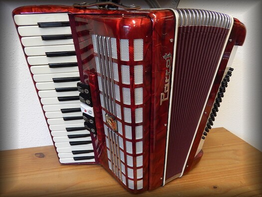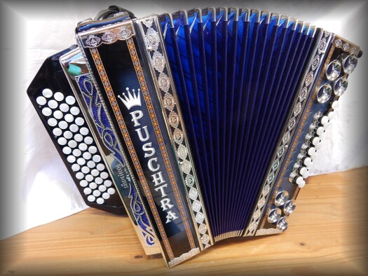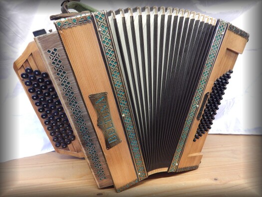 3-chörig mit 5 Register, 48 Diskantknöpfe,